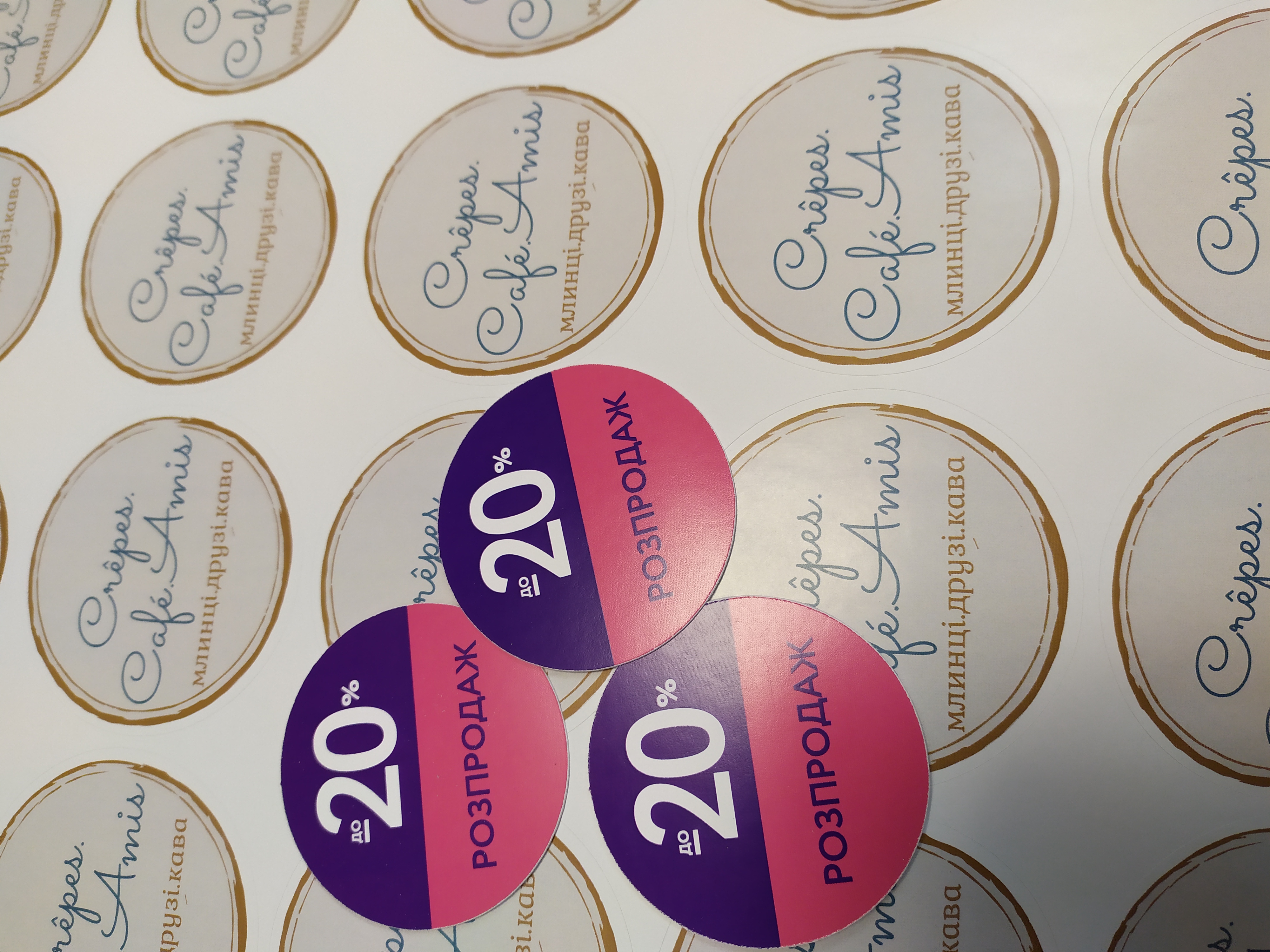 Ми робимо відмінний цифровий друк наліпок які потрібні прямо сьогодні. Таких як наприклад, наліпки на пакування для подарунків (наклейки на подарочную упаковку) - це і на наліпки на готову коробку із гофорокартону, на подарункові коробки до Нового Року чи іншого свята. Дуже часто це наклейка з логотипом, яка не буде гарно виглядати, якщо не зробити порізку по контуру. Да і наклеювати буде не зручно) Отже, якщо терміново потрвбні наклейки на коробки - звертайтесь!