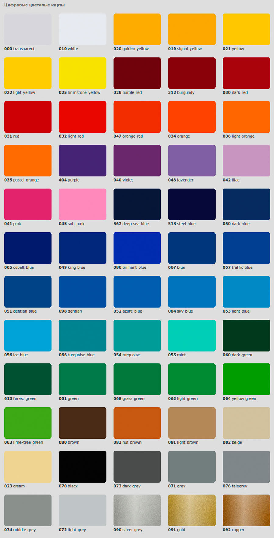 Данные таблички производятся методом нанесения на пластик выбранной толщины и размера аппликации из предварительно вырезанной на плоттере пленки. Такой способ оптимален для небольших табличек, а также в случае, когда необходима точность цветопередачи. Основные цвета стандартной пленки 641 серии ТМ ORACAL представлены ниже. |